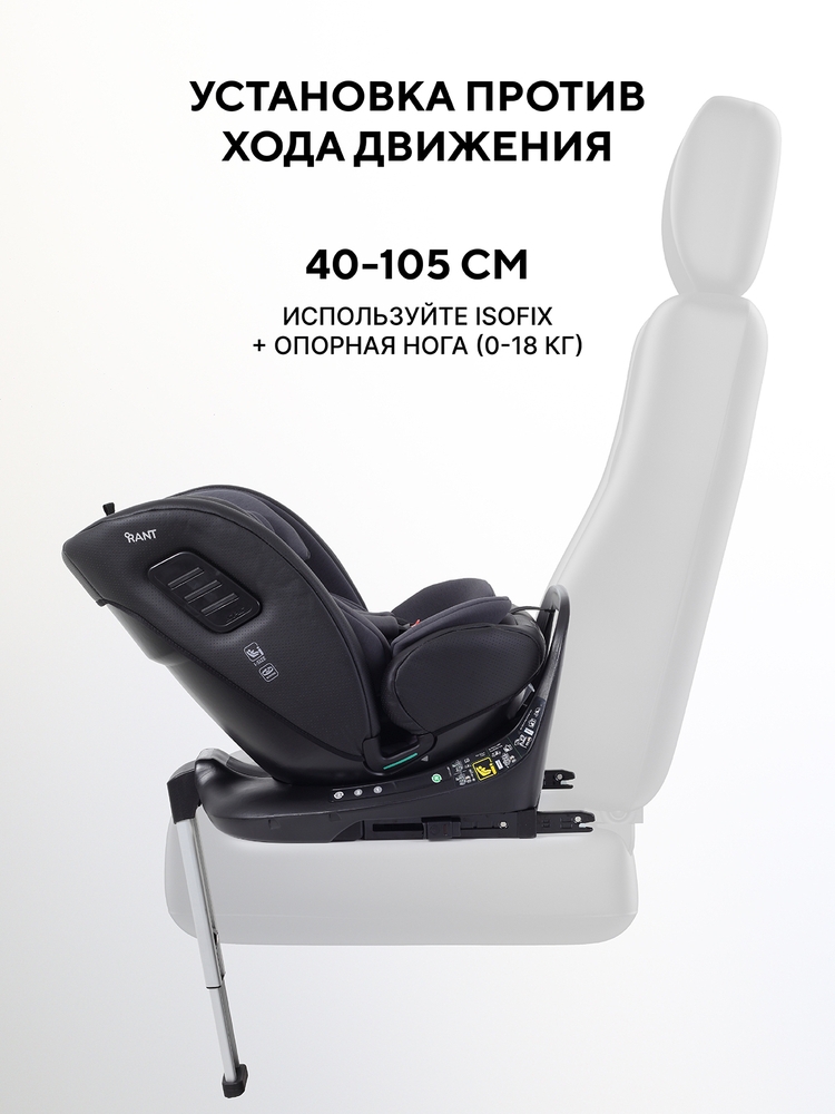 40–105 см (0-18 кг): против хода движения ISOFIX + опорная нога