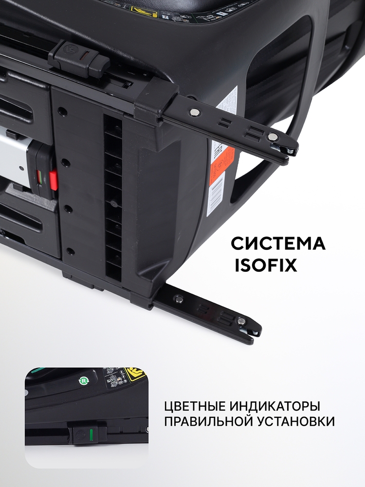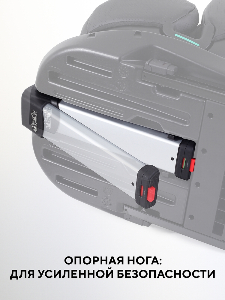 упорная телескопическая нога, дополненная индикатором (красный цвет - установлена неправильно, зеленый цвет - правильно), - актуальная дополнительная защита. Элемент исключает вероятность опрокидывания или смещения автокресла, а также снижает нагрузку на ISOFIX в случае аварии.
