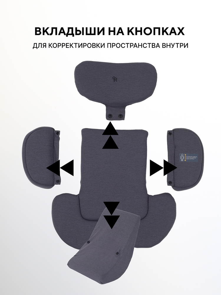 5-точечные ремни безопасности не дадут выскользнуть малышу при ударе, а мягкие плечевые накладки подарят дополнительный комфорт и обеспечат надежное прилегание ремней