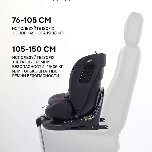 автокресло имеет новый международный cертификат Eвропейского cоюза (EAC) - ECE R129 (I-Size). Каждая модель перед запуском в линейке бренда RANT проходит ряд краш-тестов, имитирующих реальные дорожные ситуации.