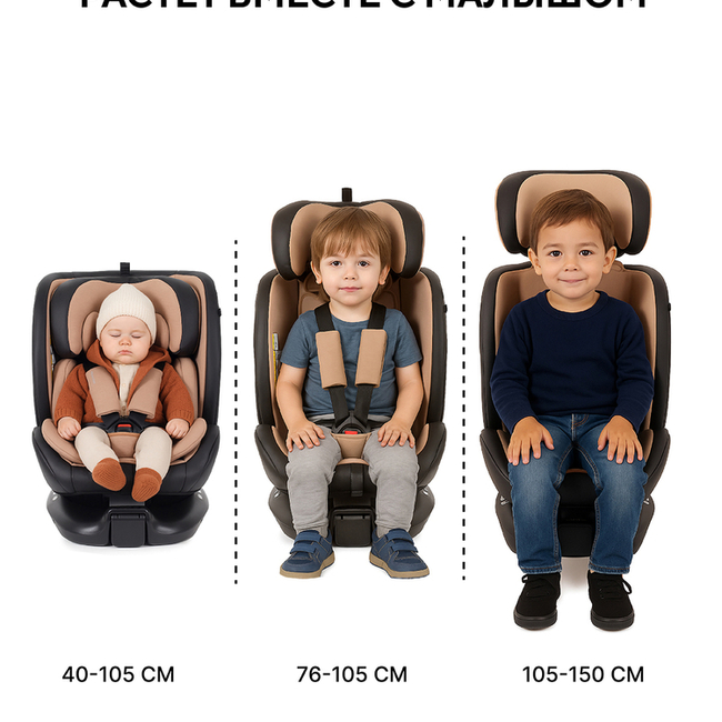 автокресло растет вместе с маленьким пассажиром. Подходит детям с рождения и до 12 лет (от 40 см до 150 см).