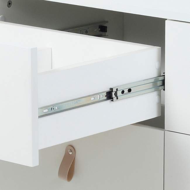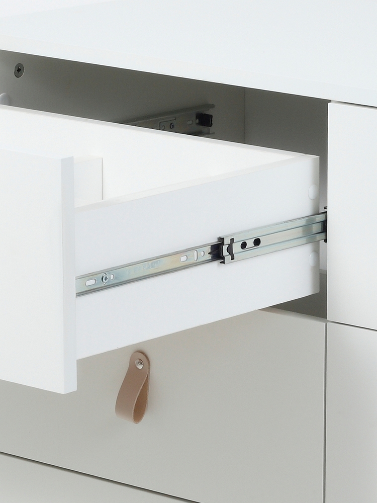 - к тому же ящики дополнены телескопическими направляющими, благодаря которым комод способен выдерживать большие нагрузки на протяжении длительного времени
