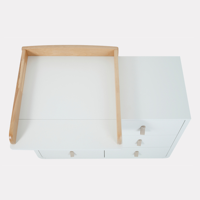 - комод дополнен съемным бортиком, превращающим его в полноценный пеленальный столик. Бортик можно установить в двух положениях - слева и справа.