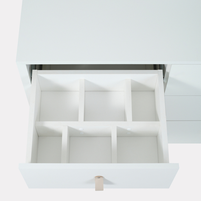- один из верхних ящиков комода дополнен органайзером, который можно вынуть и установить в верхний левый или в верхний правый ящик